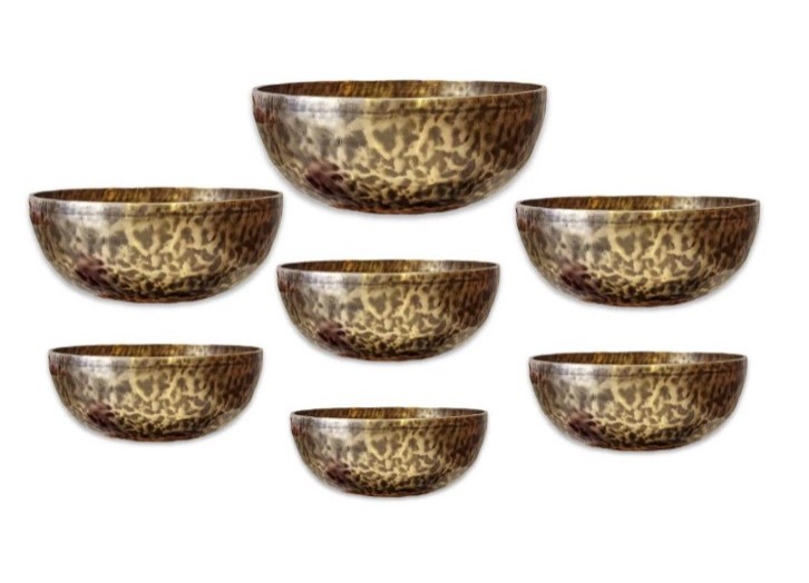 Handmade Tiger Eye 7 Chakra Singing Bowl Set for Sound Healing